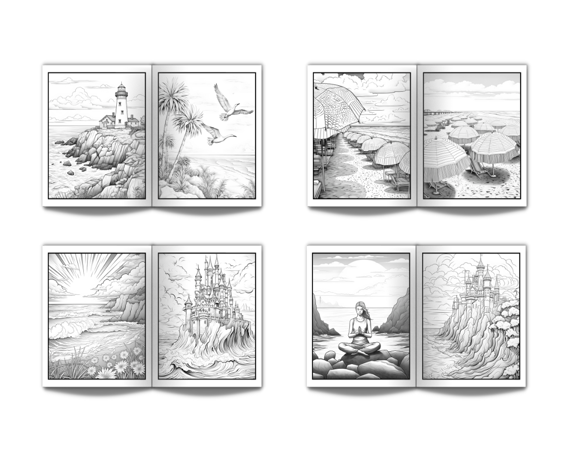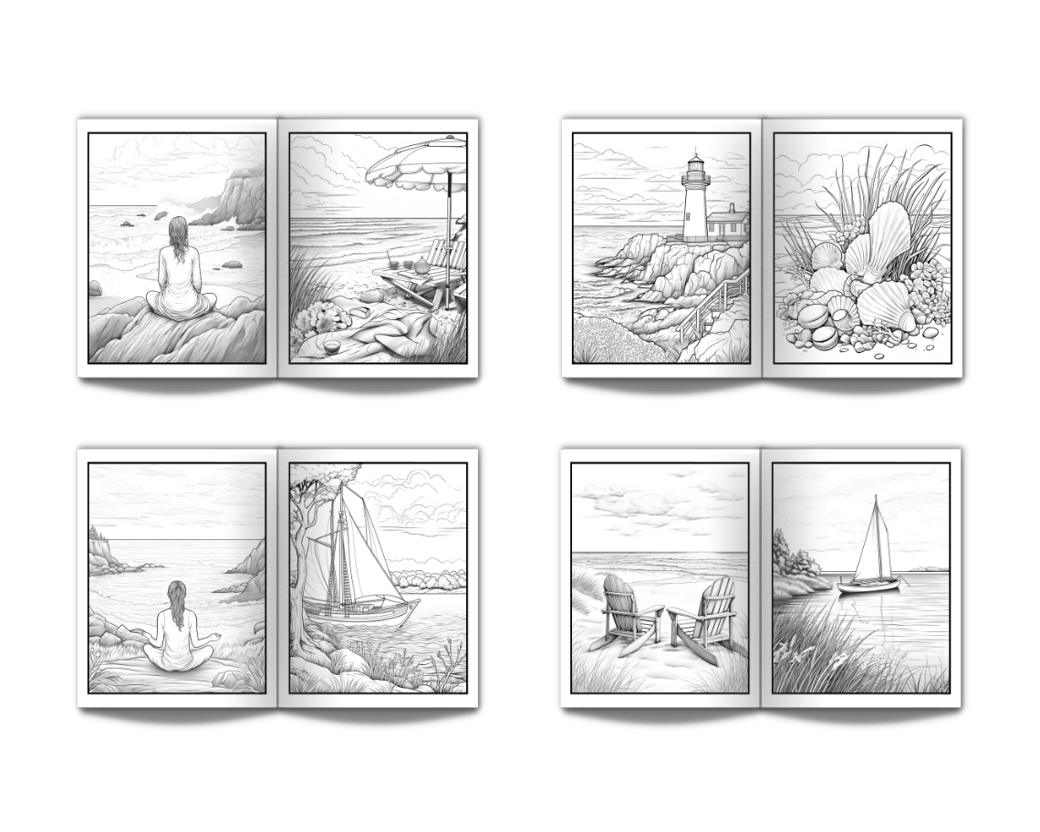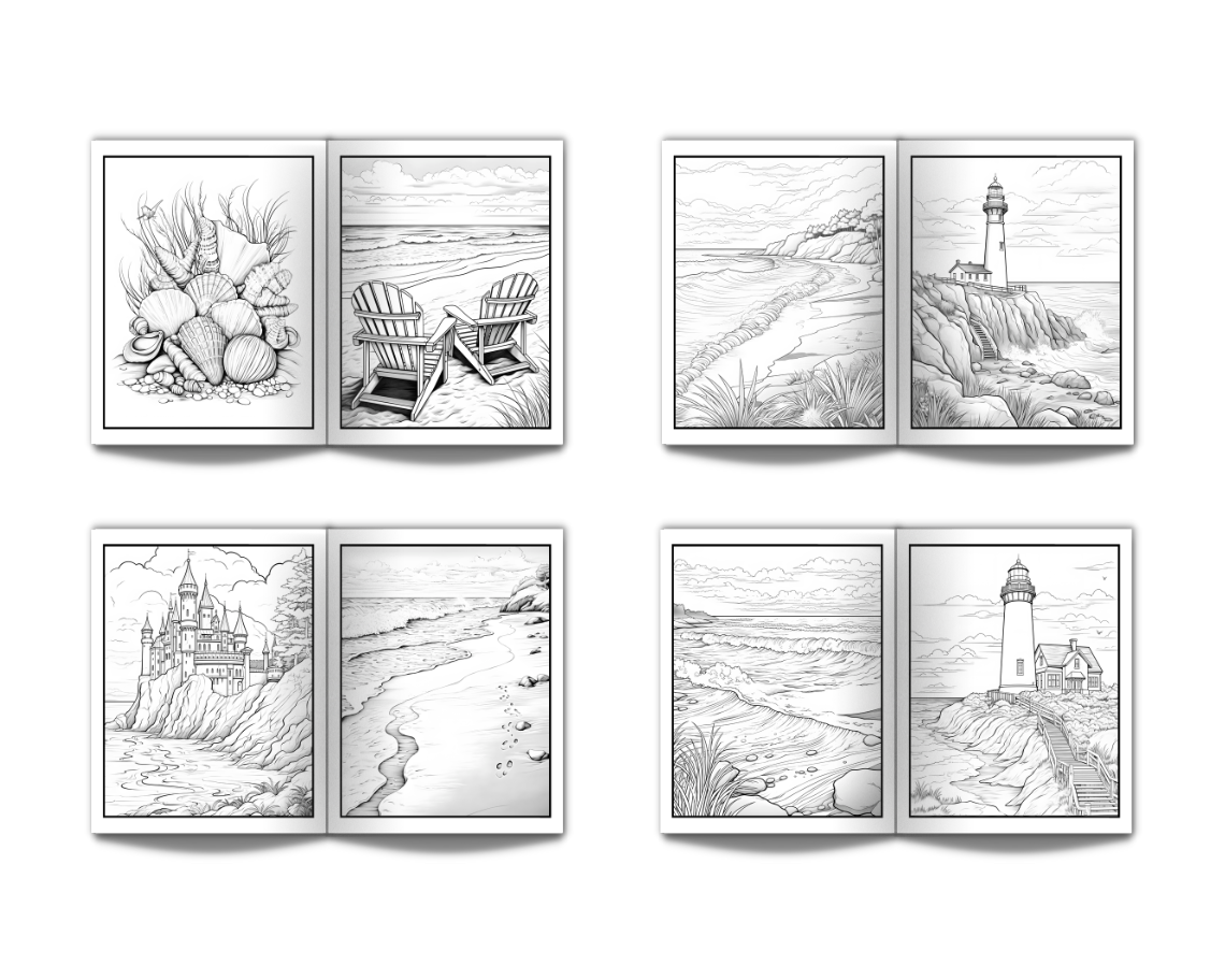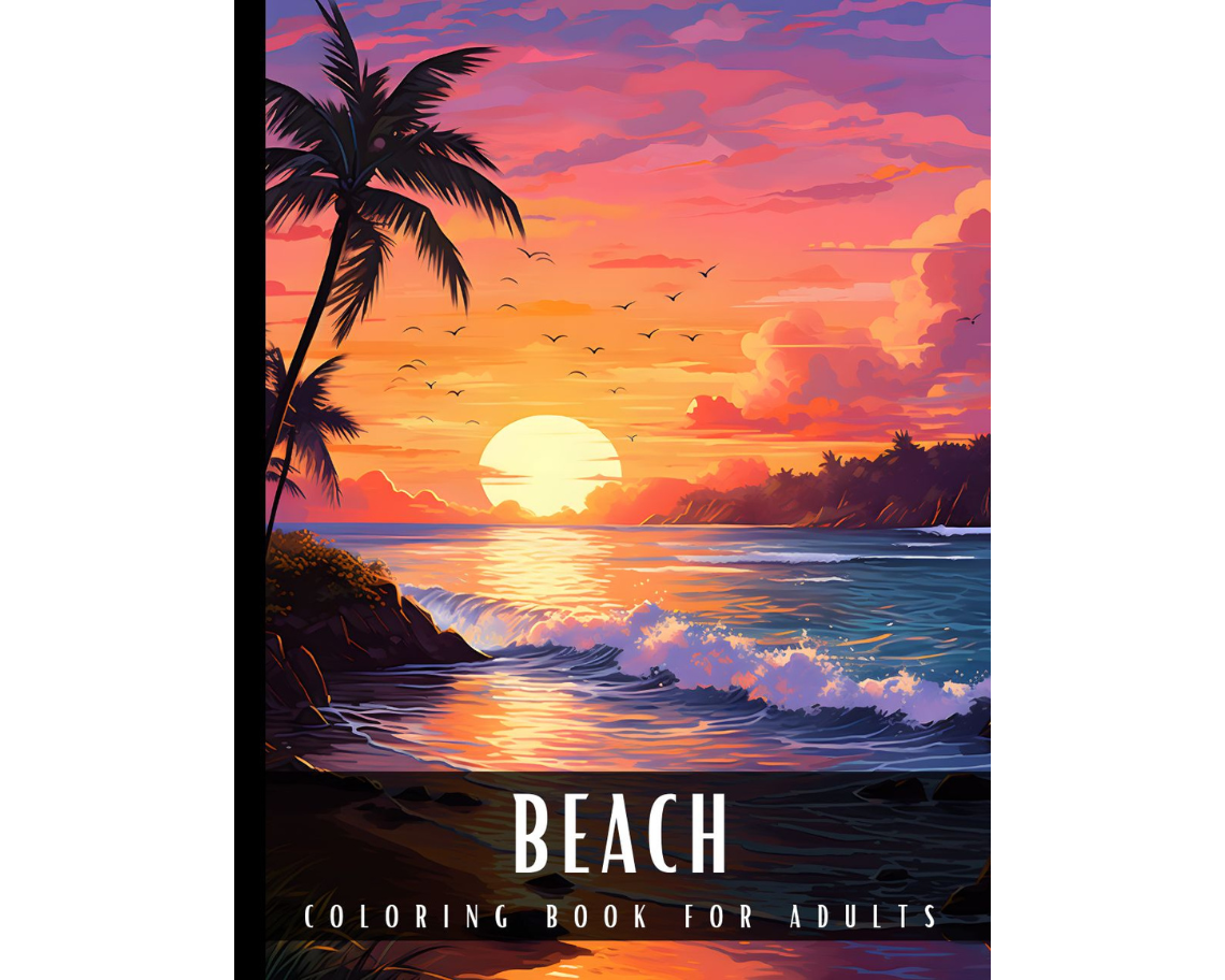 Coloring Book for Adults Beach: Large Print Stress Relief Adult Coloring Book with Seaside Serene Scenes Houses Ocean Sealife Stunning Sunsets - 50 Coloring Pages Perfect for Relaxation