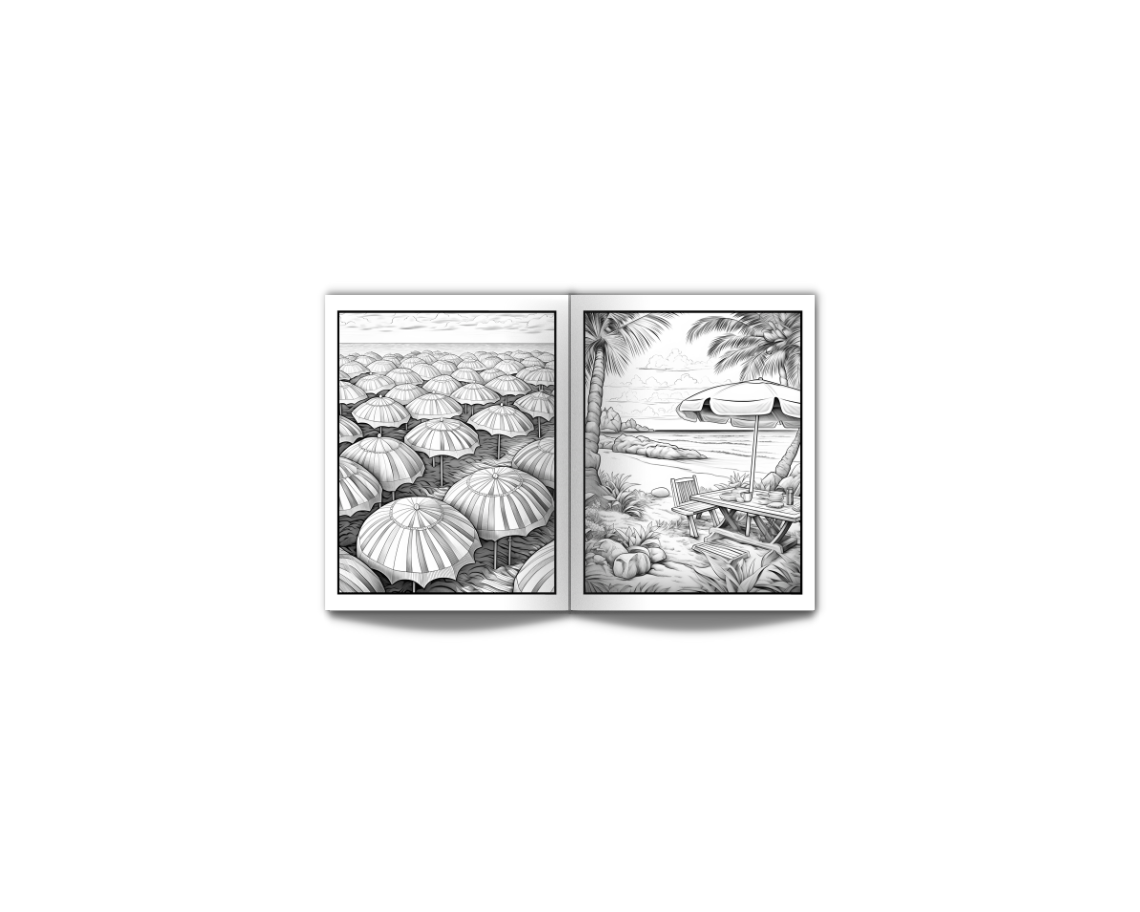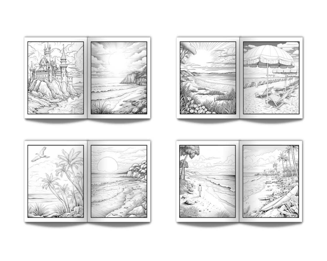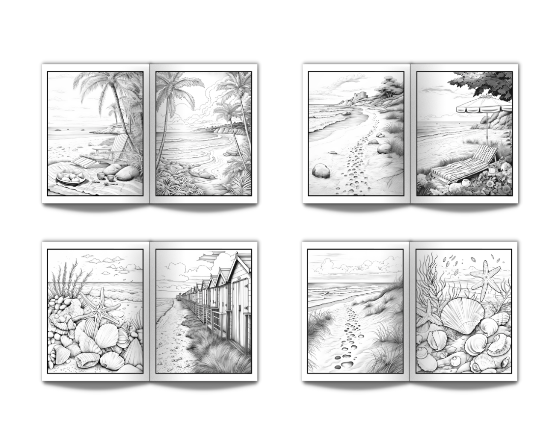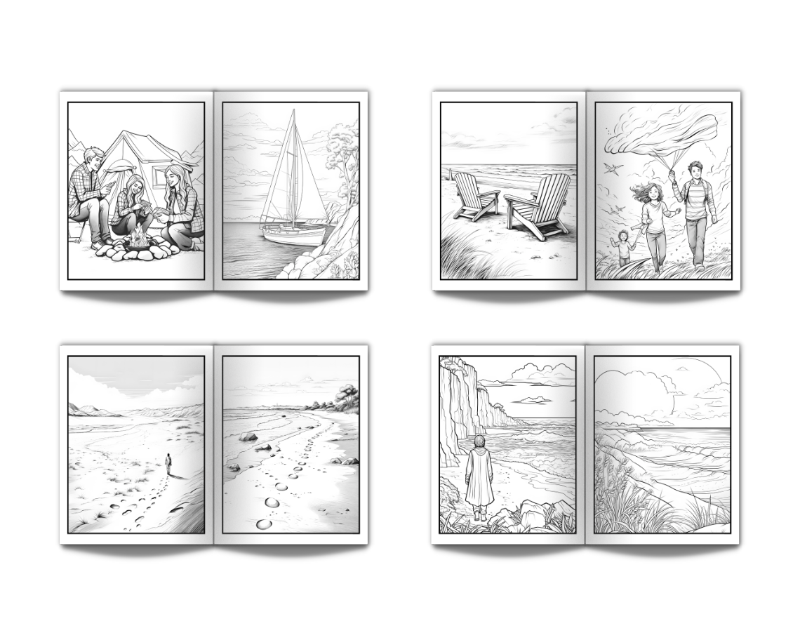 Coloring Book for Adults Beach: Large Print Stress Relief Adult Coloring Book with Seaside Serene Scenes Houses Ocean Sealife Stunning Sunsets - 50 Coloring Pages Perfect for Relaxation