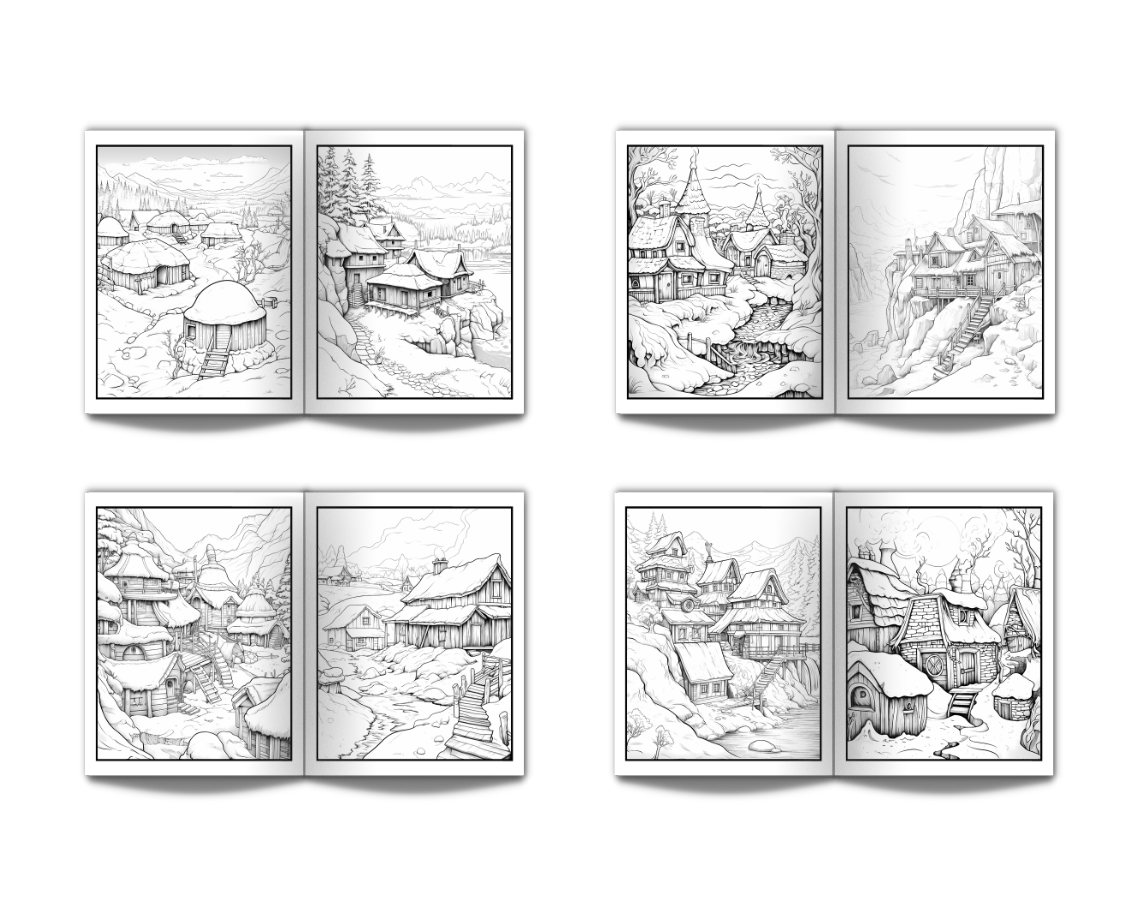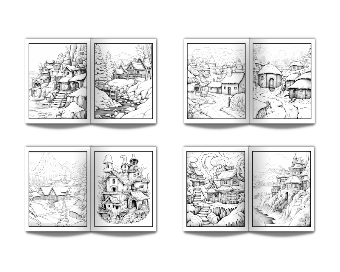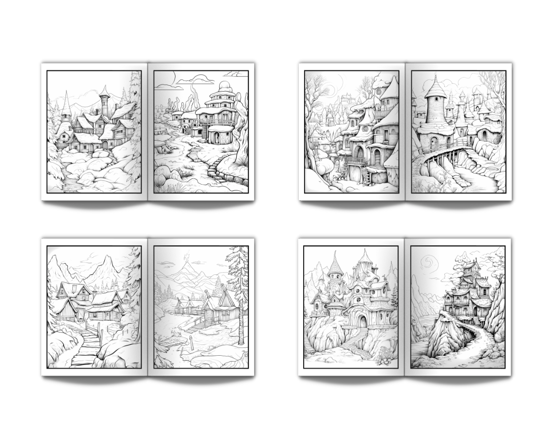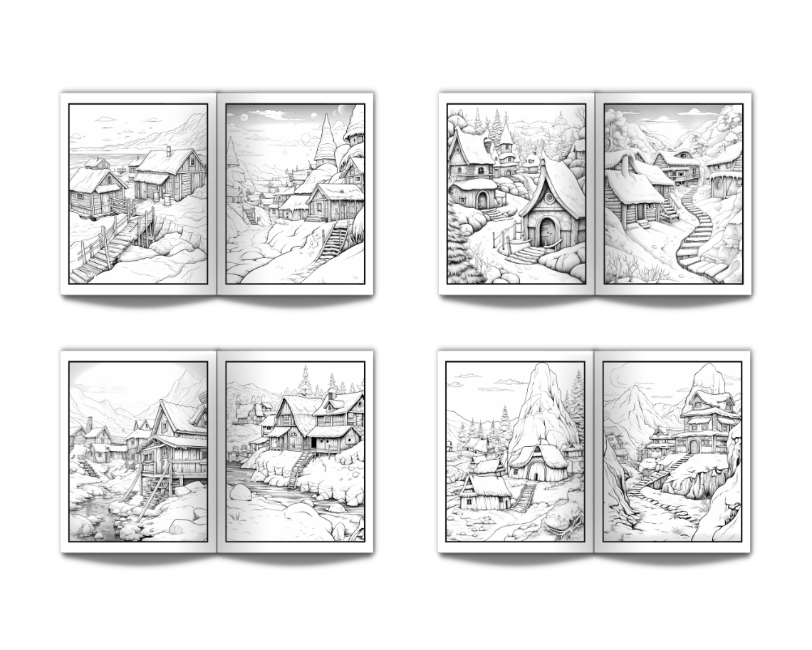 Eskimo Houses Landscapes & Architecture Coloring Book for Adults: Beautiful Nature Landscapes Sceneries and Foreign Buildings Coloring Book for Adults Perfect for Stress Relief and Relaxation - 50 Coloring Pages