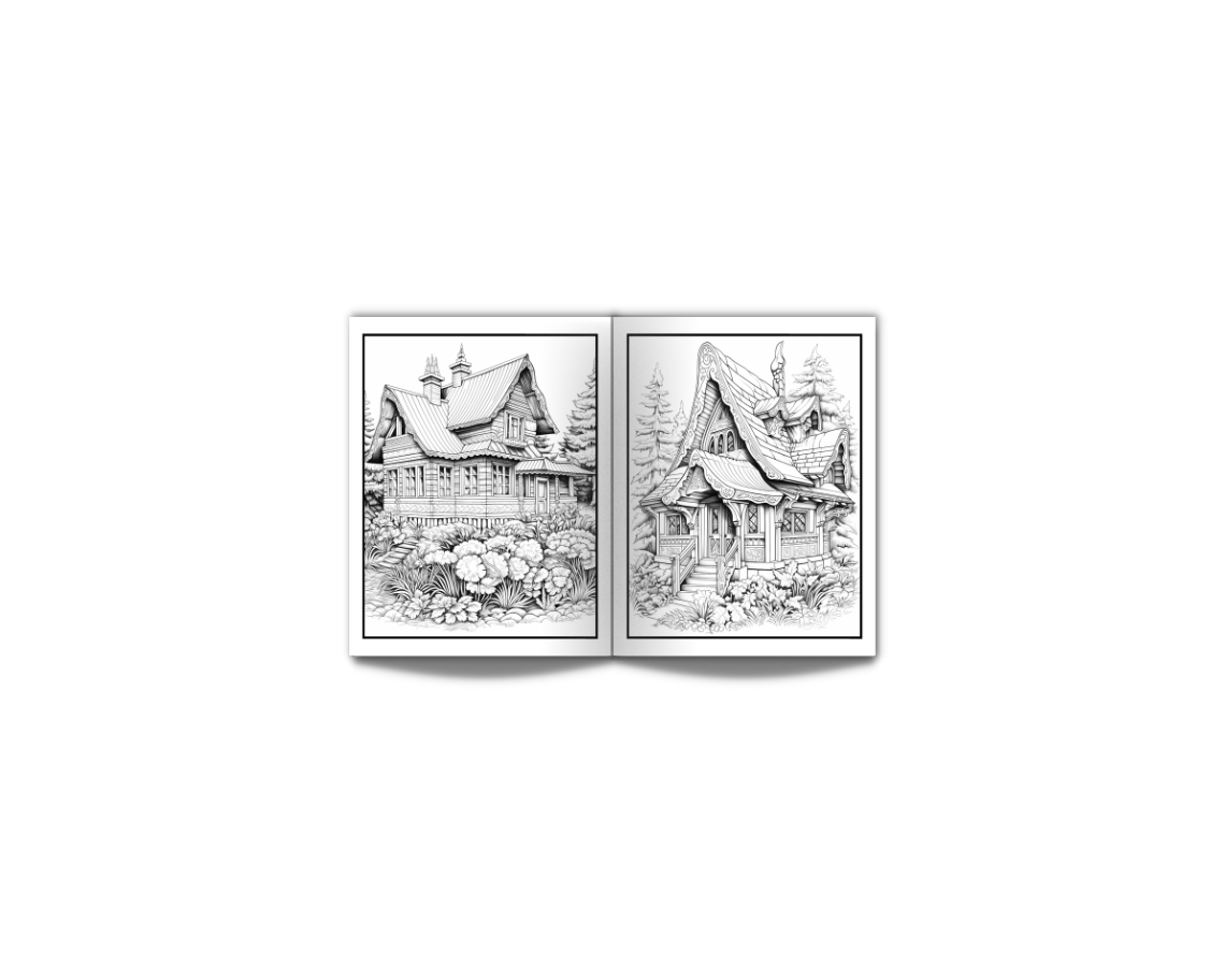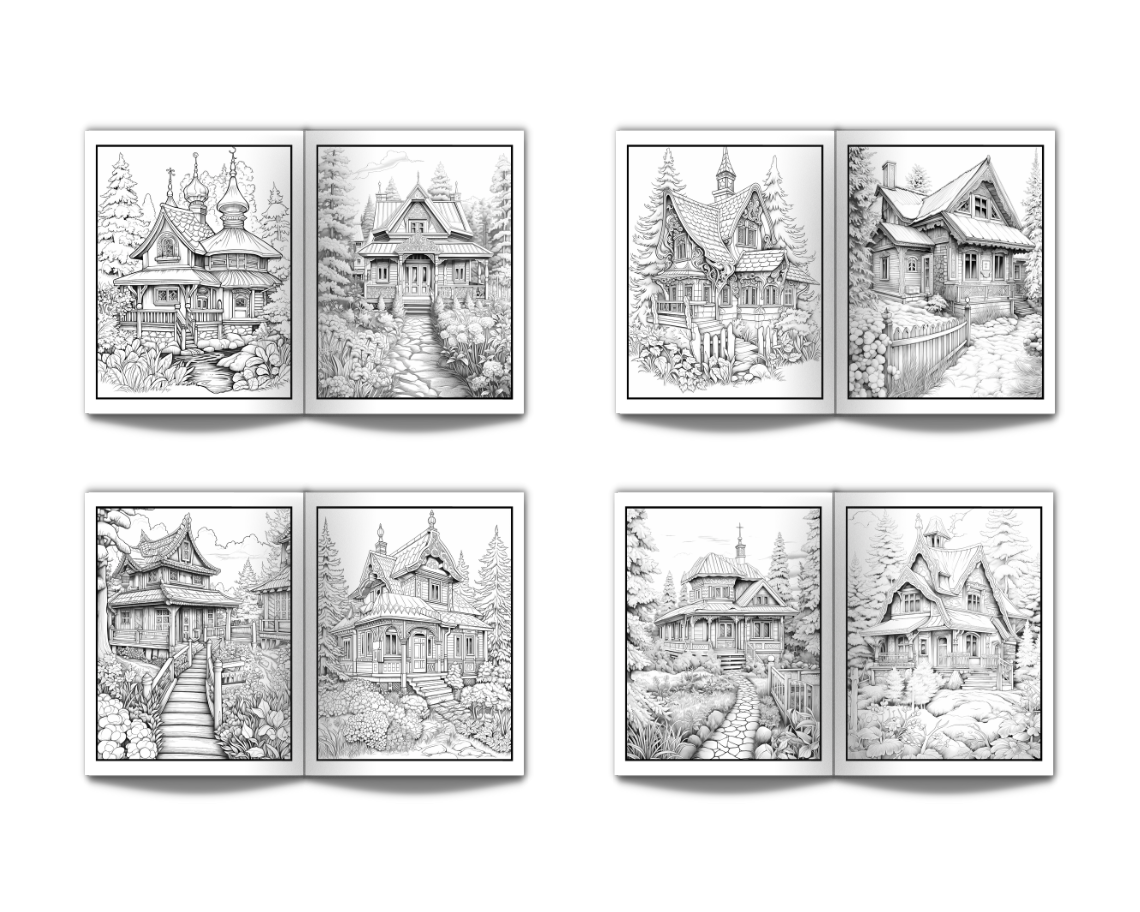 Russian Houses Landscapes & Architecture Coloring Book for Adults: Beautiful Nature Landscapes Sceneries and Foreign Buildings Coloring Book for Adults Perfect for Stress Relief and Relaxation - 50 Coloring Pages Paperback