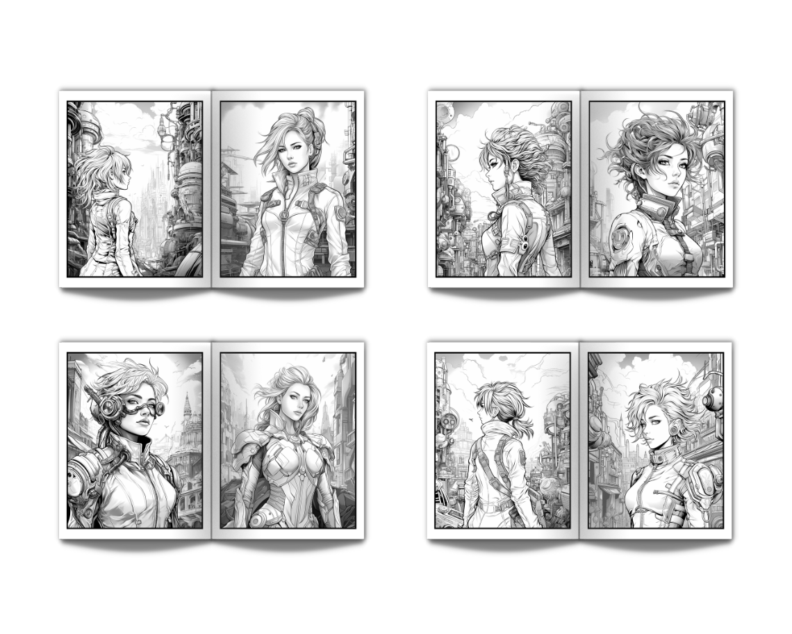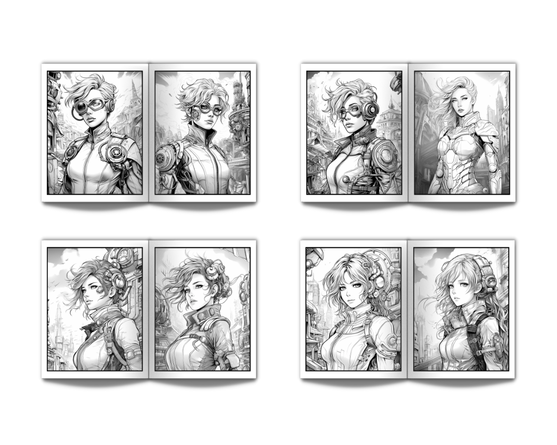 Steampunk Female Heroes Coloring Book for Adults Volume One: An Adult Coloring Book with Steampunk Heroes in a Futuristic City - 50 Coloring Pages