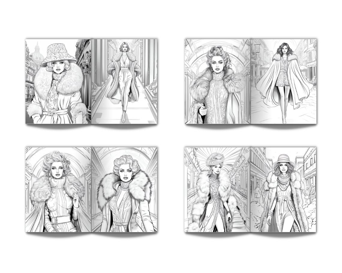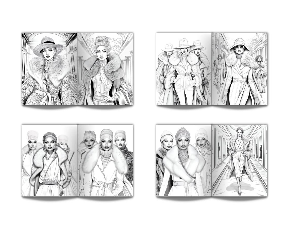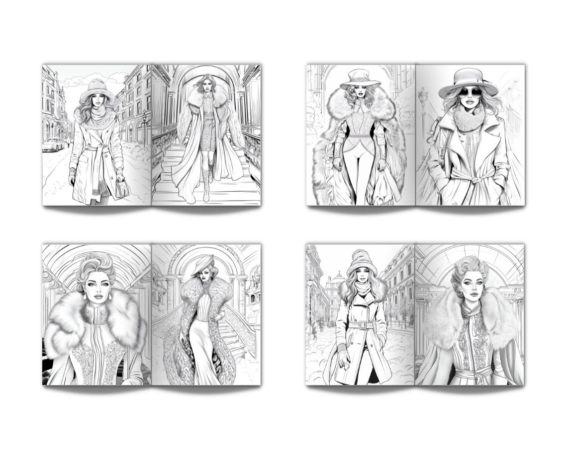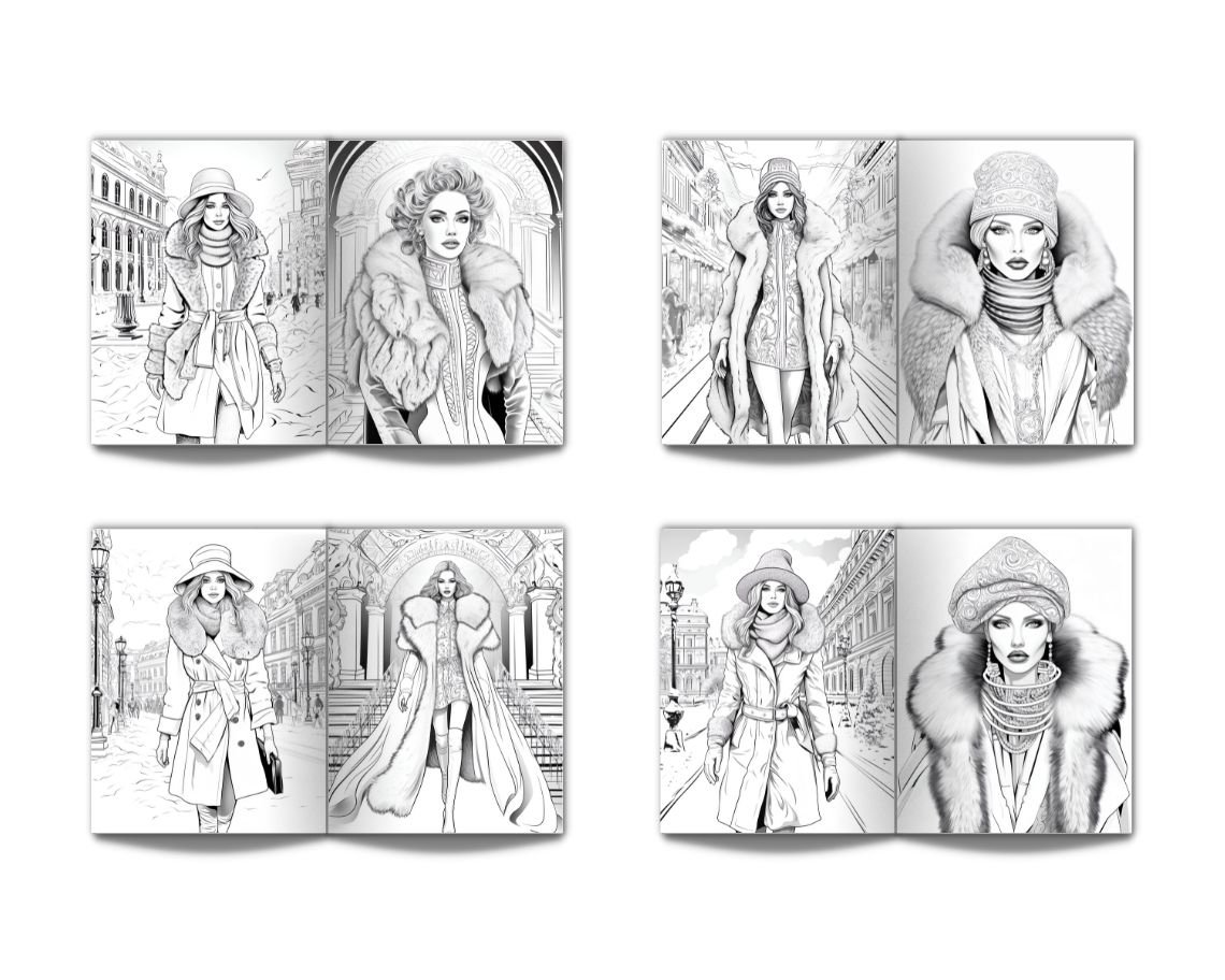 Winter Fashion Photoshoot Coloring Book for Adults: Stress Relief Adult Coloring Book With Portraits Of Beautiful Models Wearing Interesting, Elegant and Everyday Clothes, Perfect for Relaxation - 50 Coloring Pages